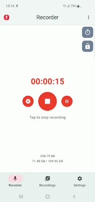 - Recording to any folder of the internal storage (memory) of your device or to an external SD card.