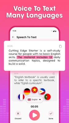The audio to text engine supports multiple languages and delivers fast, accurate results. Just record audio and tap to convert your words into text - no typing needed.