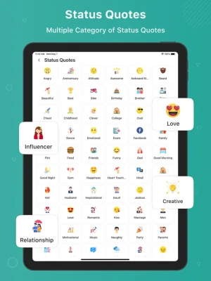* Status Quotes: Get daily updated status ideas, quotes, and captions to express your mood.