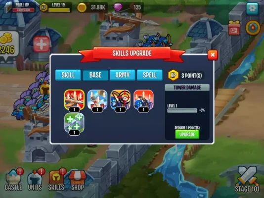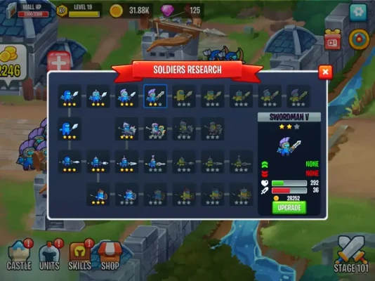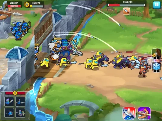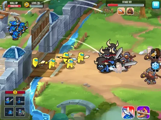 Hire, upgrade your warriors and prepare the sword, wait for enemies. the war horn will sound again and our warriors will destroy the enemy walls and towers.