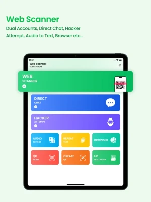 Web Scanner for Dual WhatsApp account, Qr code scanner & generator, Private Browser, Wallpaper Download, Text repeater, App Lock & more awesome features.