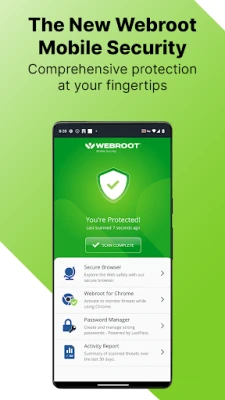 Webroot Mobile Security scans apps for malware and viruses and keeps you safe and secure while browsing, shopping, and banking on your Android device. Webroot uses machine learning and artificial intelligence (AI) to provide the most advanced protection available for your mobile device. It protects your browsing activity, detects and blocks malicious apps, and gives you access to a personalized report that helps you improve your online safety score. With Webroot mobile security you can put up your best defense against hackers with fast, easy to use real-time protection. Live a better digital life with Webroot.