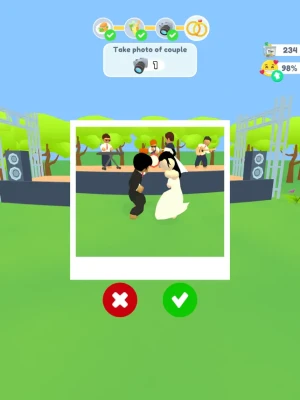 It's showtime! As the wedding planner extraordinaire, you'll oversee every aspect of the event. Serve mouthwatering delicacies and refreshing drinks to keep the guests happy and satisfied. Capture beautiful moments by taking stunning photos of the guests, immortalizing memories that will last a lifetime. And when unexpected mishaps occur, be the quick-thinking problem solver who saves the day!