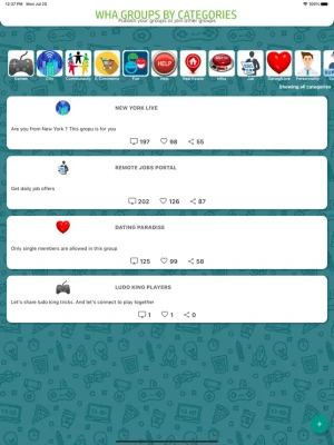 Join the latest groups in different categories like Entertainment, Funny, Education, Fitness, Games, Friendship, Love & Romance, Sports, News, Photography, Technology, and more. All the category keeps lots of active Groups Invite Links. You can use the app completely free and join the groups easily.