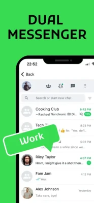 ► Seamlessly switch between WhatsApp accounts without the need for another device.