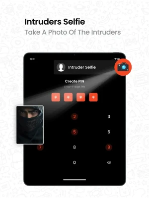 - intruder selfie, hack alert, wrong password selfie, app lock security