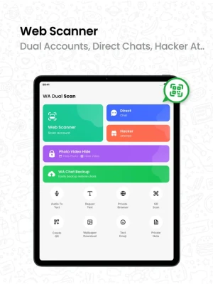 Use WhatsWeb to scan WhatsApp Web QR, manage dual WhatsApp accounts, and back up chats easily.