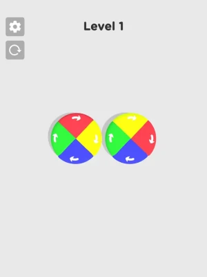 Match the colors with the wheels corresponding to the appropriate color by rotating the wheels. Clear the wheels by matching all the colors. Pay attention to which way the wheels turn. Remember, each color has a counterpart on the other wheel.