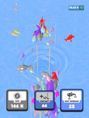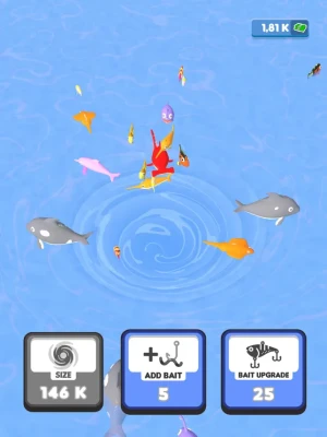 Time to go fishing! But this is no normal fishing we are doing here. We are using a whirlpool to catch the fish! Up the size of your whirlpool. Use baits to lure more fish in! Upgrade your baits to get bigger fish to come towards your whirlpool! You will make insane amounts of money! Let's get fishin'!
