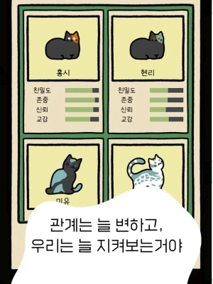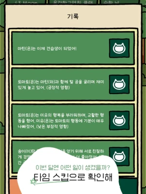 "Cats Exploring Life" is a game where you can watch a bunch of cats play and live a relaxing story in a base camp located in the forest! It's full of cute daily routines and automatically unfolding stories of various cat camp members ;)