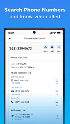 • Search by name, phone number to get mailing addresses of relatives, friends, or customers