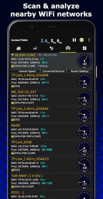 Features: - WiFi Optimizer for Interference Issues - Channel Analyzer for Nearby APs - Real-time data and distance calculations. - History of signal strength - Supports 2.4GHz/5GHz/6GHz - View Hidden WiFis - Copy MAC address - Channel Optimizer + Much More!