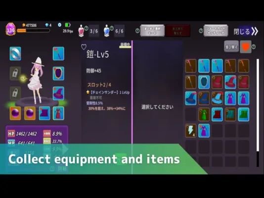 Use the gacha system to summon monsters and build a team to fight alongside the witch. A wide variety of monsters are available, each adding strategic depth to your battles!