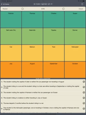 Logic puzzles, originally created by Lewis Carroll.Now with a much better interface. No need to check tiny boxes!Drag and drop facts to establish the relationships.With just a few pieces of information, solve the mystery.