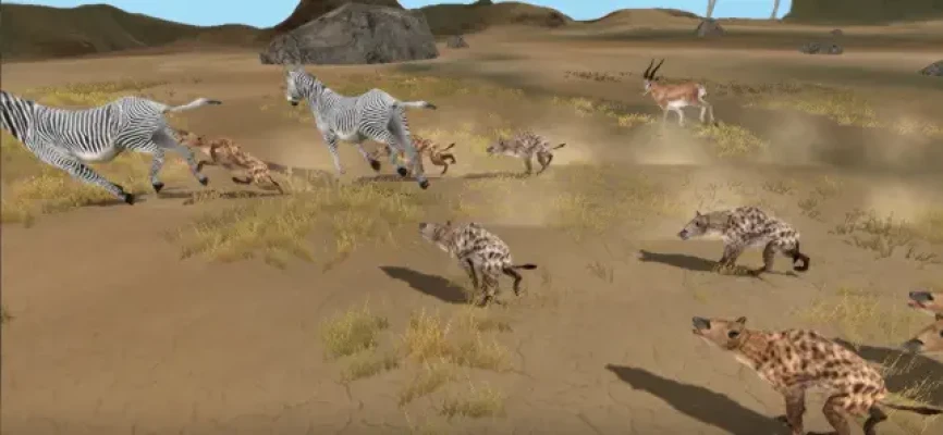 · Players can not only run, bite, and attack other animals but can also jump up to bite and hang on them along, make a surprise attack by hiding behind rocks or bushes, and run into preys to make them fall. They can also hunt animals using terrain features.