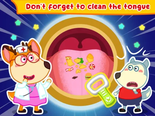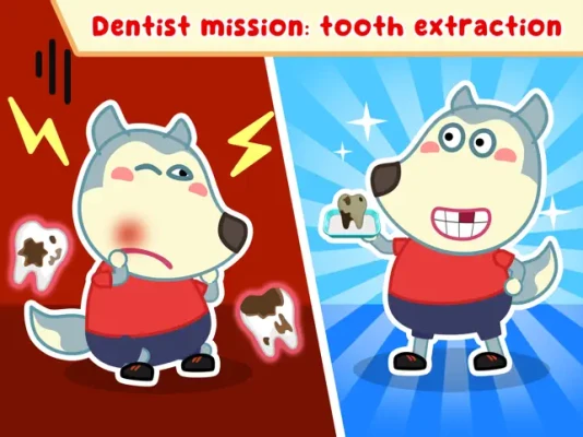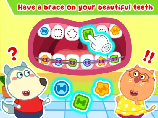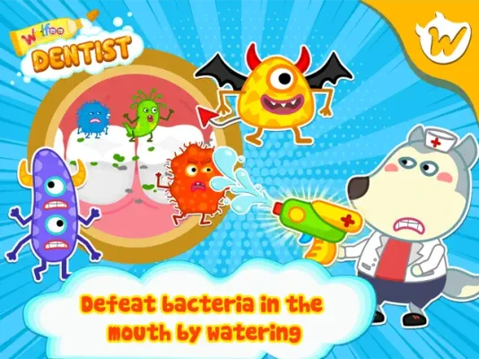 Kid’s dental care, family dental care is very important. Let's show kids how to clean their teeth in the right way, wear braces on their teeth, and take care of their teeth every day as dentist's advice. Come with Wolfoo to visit dentist’s room at Wolfoo kindergarten, where the doctor dentist checks your teeth and takes care of them. This tooth game help Wolfoo and Lucy check their teeth well every day before go to Wolfoo preschool. We all learn about dental care at Wolfoo kindergarten, but in this Wolfoo dentist, dental care game, we meet doctor dentist, defeat bacteria by mouth watering, remove decayed tooth, try tooth extraction, whiten teeth, and clean tongue, mouth, teeth, gum like in a dental adventure. Just in this Wolfoo dental care free dentist game, there are so many mini games to try. Let's download this family dental care game and enjoy with Wolfoo and Lucy.