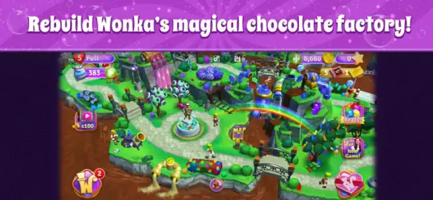 Play events like Golden Ticket Rush, Gummy Rush, Fudge Frenzy, Chocolatier Champions or collect medallions in match 3 puzzles to meet characters like Augustus Gloop, Veruca Salt, Violet Beauregarde, Mike Teavee & Charlie Bucket. Jam to the timeless music from the film as you explore rooms never before seen in the Chocolate Factory!