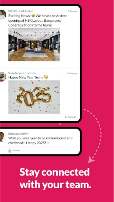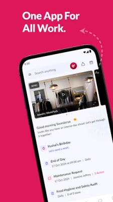Knowledge Management & Learning, Workflows, Feedback's & Surveys, Collaboration, work, visual merchandising, executive announcements, sales management