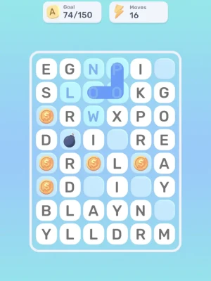 Dig through the grid to collect letters and coins. Find all the word you can in any direction you want. The longer it is, the bigger the explosion will be!