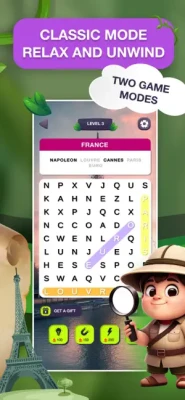 In our game, you’ll be uncovering words hidden within country-themed boards filled with letters. Each theme, will introduce you to new countries and expand your horizons. Connect letters to form words, and as you solve puzzles, you'll learn while having fun. Think it sounds easy? Challenge yourself and see how much you can discover!
