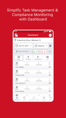 Task Dashboard – Get a top-view for locations, tasks & corrective actions (CA) along with their status.