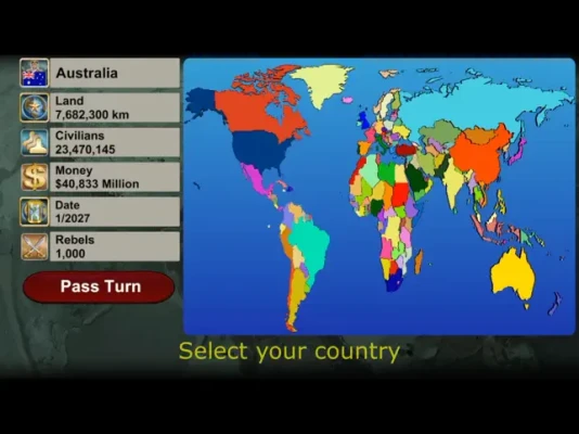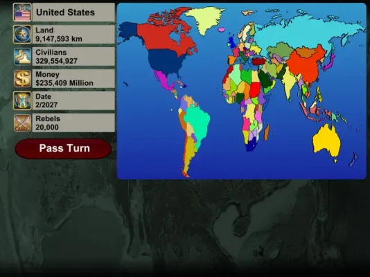 * Real-World Conditions: Experience current world events and country statuses.