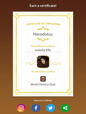 Playing a world history trivia quiz might get boring, but not with World History Quiz – Trivia Questions and Answers! With 150 general history questions and answers, you will read 150 super fun history facts you have never heard before. Do you know the answer to all the American history quiz questions? How about World War 2 quiz questions? You'll have to know the answers to history trivia questions from the period of ancient Egypt and the pyramids to Hiroshima, Nagasaki, Chernobyl and the Cold War in order to get the certificate of a true historian.