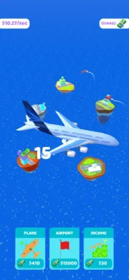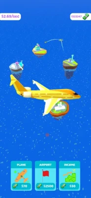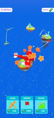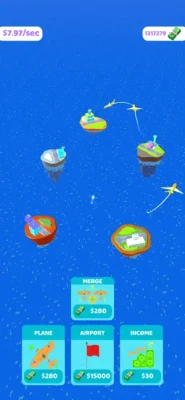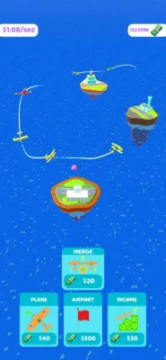 Buy new airports to enlarge your destination! Buy new airplanes and merge them to get new airplanes! Drop passengers with parachute! Fly between different routes!