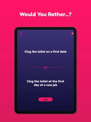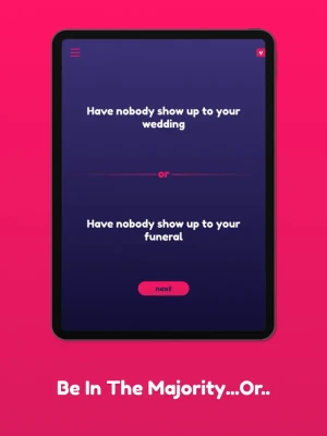 Play through hundreds (400+) of fun, embarrassing, and intriguing questions, and find out which scenarios your friends and close ones prefer! Spice up your parties by making it competitive!