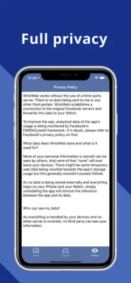 WristWeb does NOT breach your privacy in any way. All data is being handled safely: Because all operations are being handled by your iPhone there is no need of a potentially insecure third-party server.