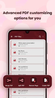 - Merge PDF: Get list of PDF files on your phone and select files that you want merge together.