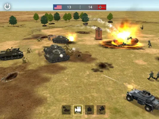 The game focuses on making the WW2 Simulator as real as possible. It begins with the ability of the players to play with actual Army and weapons from WW2 such as famous Tiger, Pershing and Sherman tanks. Players have the option of playing custom mode as every War Simulation fan enjoys setting up the troops and watching which side wins the battle. On custom mode, players can choose to play USA, USSR or Germany.