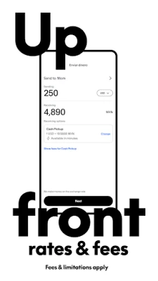 Multiple ways to send, including bank deposits, cash pickup, and mobile wallet transfers