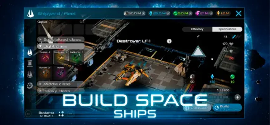 Xterium offers a modernization center where players can improve their warship craft and defense by completing contracts and sending their fleet for a unique revision. Talented craftsmen can add new types of combat weapons to ready-made ships, increase the recovery of shields, or add a double-shot and shield module, depending on the player's strategy. By studying attack, armor, and shields, players can increase the combat power of their spaceship.