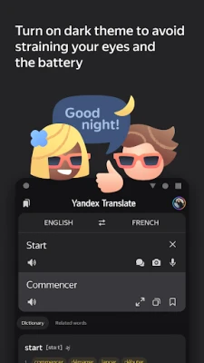 • Save translations in Favorites and view your translation history at any time.