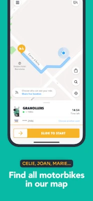 Book through the app. You have 15 free minutes to get to the motorbike.