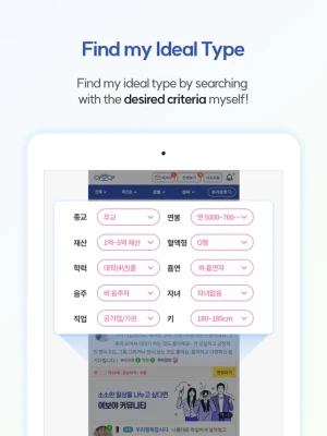 On Yeoboya, you can search for your ideal partner based on age, location, education, salary, religion, and more.
