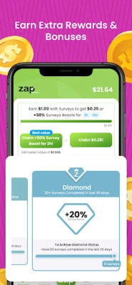 Get access to extra surveys, extra rewards and more! Earn real money from taking surveys, build up a login streak, and redeem your rewards faster than ever. Share your opinion with daily poll options, and continue earning real cash rewards with Zap Surveys.