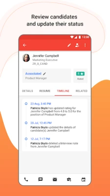 Held up in meetings or stuck in traffic? Zoho Recruit's hiring app helps you stay in touch with your candidates, clients, and contacts. They are just a call or text away.