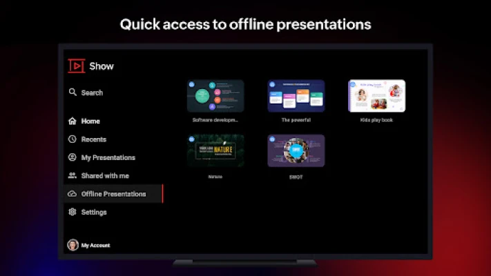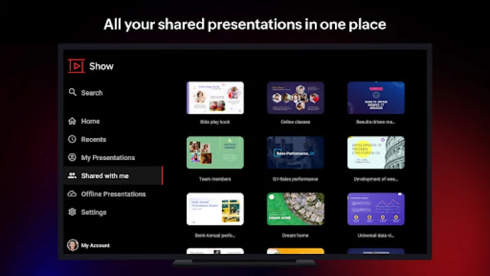 Zoho Show is now available for all Android TV users. Presentations created on the web(zoho.com/show) can be viewed on your Android television without any additional cost. Forget those messy cables—install the Zoho Show app on your Android TV, log in with your Zoho account, and start presenting.