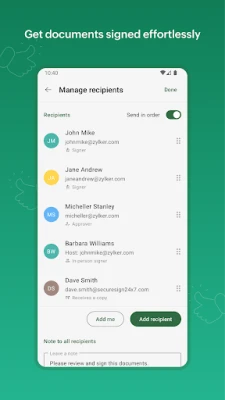 Zoho Sign is a secure and user-friendly digital signature solution that simplifies your document workflows. Whether you're a small business or a global enterprise, Zoho Sign helps you sign, send, and manage documents securely from your mobile devices while ensuring full legal compliance.