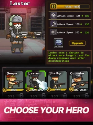 Zombie Fighter is a pixel survival game, gear to alive. Choose your hero and weapon as you want to defense zombies, fight with them while avoiding their attack. Using your strategy to select talent and upgrade your equipment to the next level.