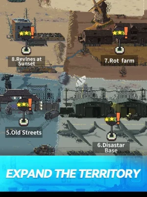 Zombie Fighter has plenty of territories waiting for you expand. Hero can only conquer territory by defeating zombies. There are 15 levels in each territory. You have to clearing all of them at one-time that you can occupy your territory successfully.