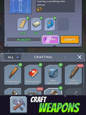 • The best of both worlds - A mix between survival and idle type games, this simulator ticks all the boxes in both of these categories. You get all the instant fun of smashing zombie heads in and fighting off waves of attack, plus the more passive fun of being able to collect tons of resources (55 different types and counting!) and combine them to create new objects. Toggle between these tasks effortlessly for maximum enjoyment.
