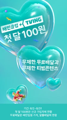 지금 배민클럽 가입하고 무료배달에 티빙 콘텐츠까지 누리세요.