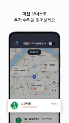 위치 : 현재 위치를 기반으로 주변 주문 등 정보 제공, 배달 현황 공유 및 경로 안내