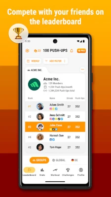 We’ve built a leaderboard to keep you motivated, and you can compare yourself with friends or the whole world. If you would like to set up a group of co-workers, you can easily create a new leaderboard only for this group of people.