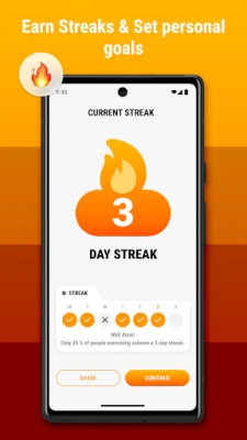 - Streaks - tracks the number of days in a row you’ve completed a workout