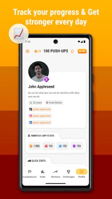 - Statistics in your profile. See your weekly, monthly, and yearly progress in a chart