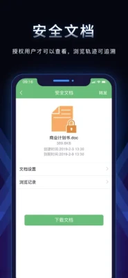 重要文档安全管控:“安全文档”实现对重要文档加密后发送,只有指定的接收方才能打开,阅读及转发,通过权限控制、阅读与传播轨迹记录、内嵌水印保证泄密可追查等手段实现文档安全管控。